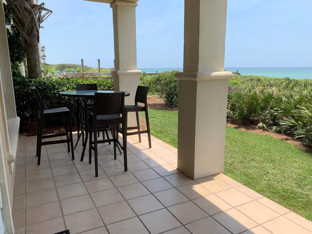 Beautiful large 3 Bedroom/3 Bathroom Gulf Front Condo at the Villas of Sunset Beach in Seacrest. Just a short stroll or bike ride to the town center nestled between Alys & Rosemary Beach where you will enjoy shopping, dining, entertainment, and much more. This condo unit is in the prestigious, private gated community of Sunset Beach. Once through the gated access you will know that you have arrived somewhere special. The brick paved street lined with palm trees lead you to the white sandy beach and the beachfront pool overlooking the emerald coast. This gulf front unit is located in building C on the ground level with amazing ocean views. This unit is steps away from the private community pool (heated October-March) and the beach access to the beautiful white sands.